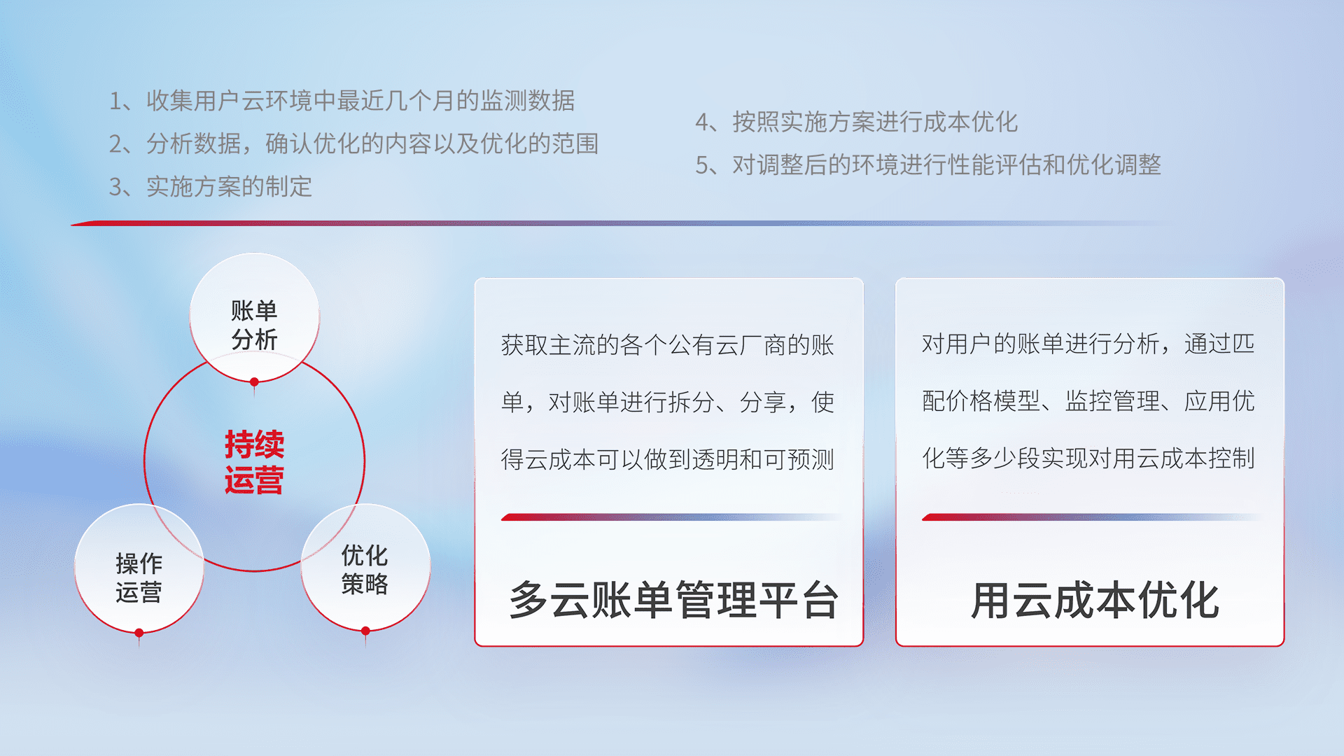 监控业务系统资源开销,,对资源的消耗精确计量,,,,实现费用的透明化管理,,,,不断提升资源使用率,,调整资源购买方式,,,,降低资源费用成本,,,,用云成本可预测、、、用云费用可优化,,云资源配额有据可依。。
